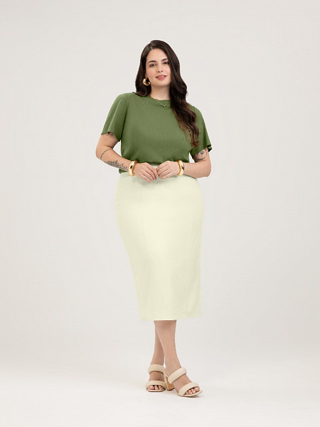 SAIA MIDI FEMININO CATIVA FORRO: 96% POLIESTER, 4% ELASTANO, CORPO: 30% LINHO, 68% VISCOSE, 2% ELASTANO Marca: CATIVA Orçar